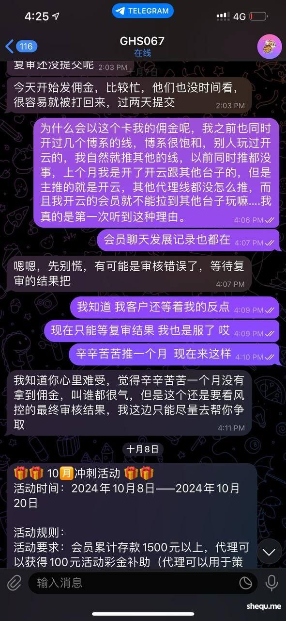 主推开云,其他台子没推过,现在以这个理由卡我佣金,一毛钱不给,